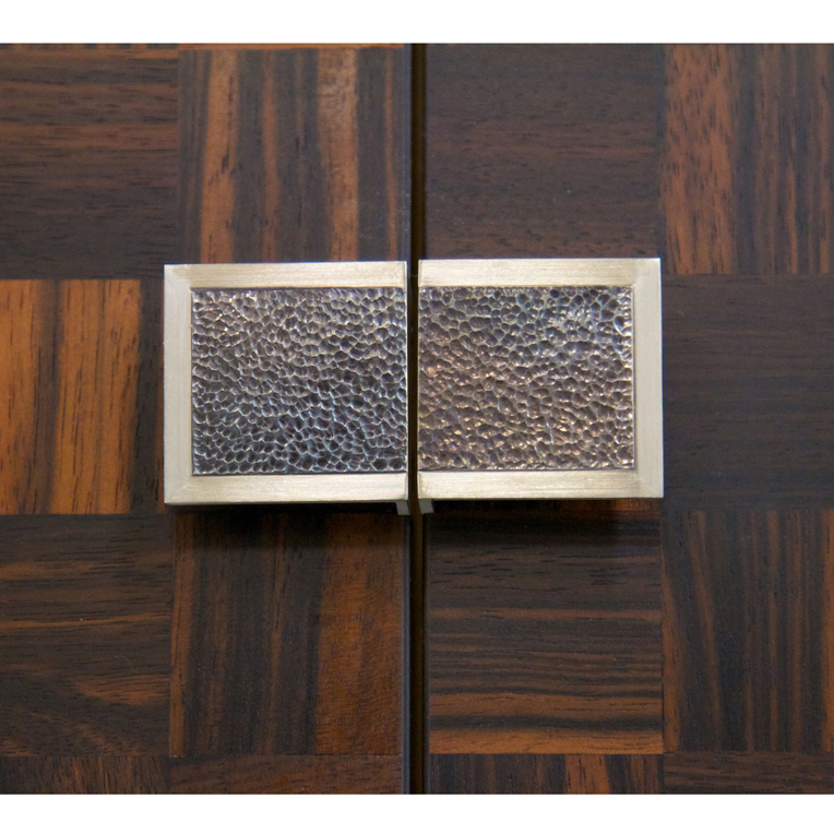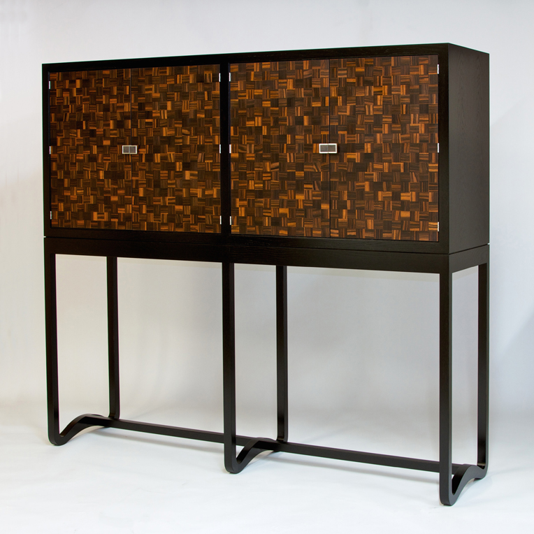 912 Macassar Ebony squares are used in the feature doors on this tall cabinet on a stand.