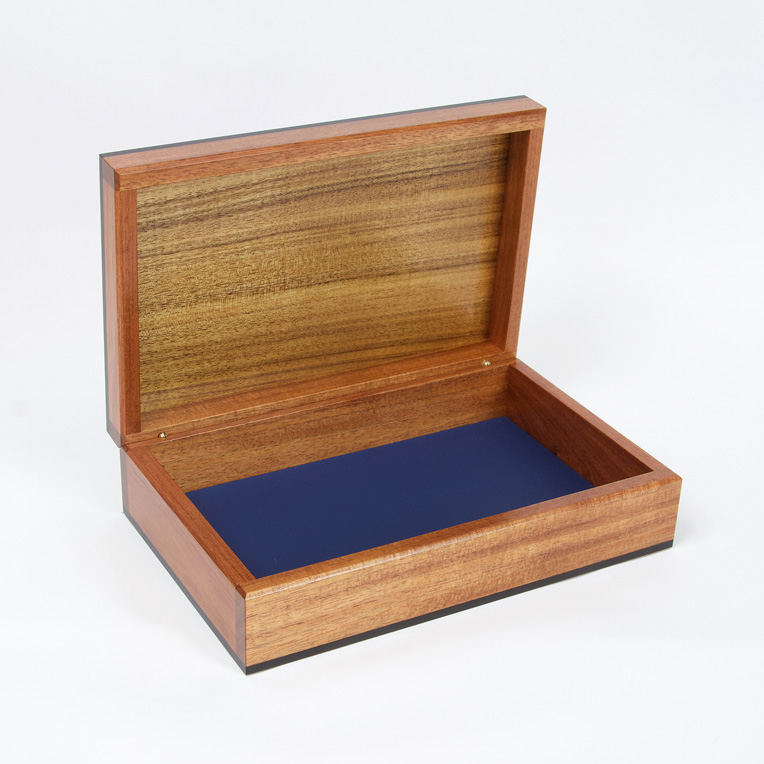 Tasmanian Blackwood, with the feature lid panels available in various Australian timbers: Blackheart Sassafras, Fiddleback Eucalypt, Fiddleback Blackwood, Burl Eucalypt, Burl Myrtle.